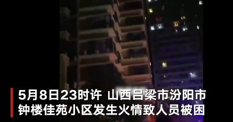 5月8日23時許,山西省呂梁市汾陽市鐘樓佳苑小區(qū)發(fā)生火情,初步判斷為四樓管道井電表箱著火。